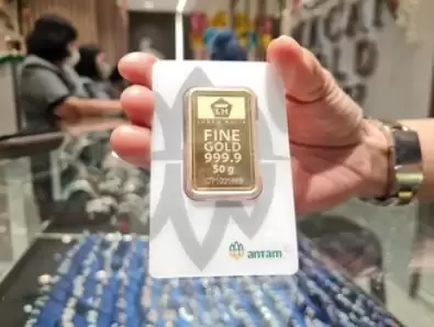 Jakarta, MI - Harga emas batangan produksi PT Aneka Tambang Tbk (Antam) kembali mengalami penurunan pada perdagangan Jumat (17/4/2026).