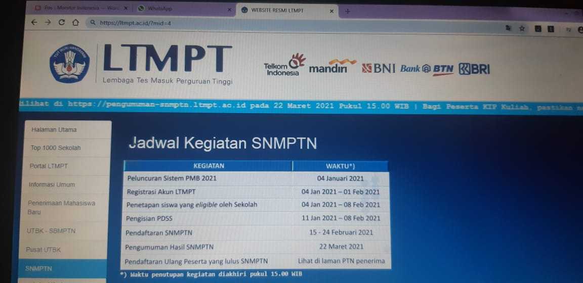 Pendaftaran SBMPTN 2021 Diperpanjang Hingga Jumat Pukul 15.00 WIB