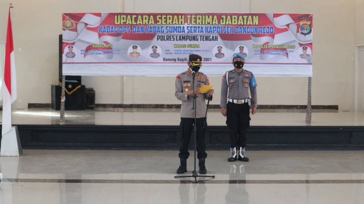 Serah Terima Dua Kabag dan Satu Kapolsek Lingkungan Polres Lampung Tengah