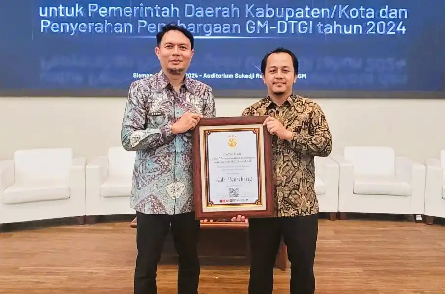 Bandung, MI - Pemerintah Kabupaten (Pemkab) Bandung, Jawa Barat meraih penghargaan pemerintah daerah (Pemda) terbaik ketujuh kategori kabupaten pada ajang Gadjah Mada Digital Transformation Governance Index (GM-DTGI) Award Tahun 2024.
