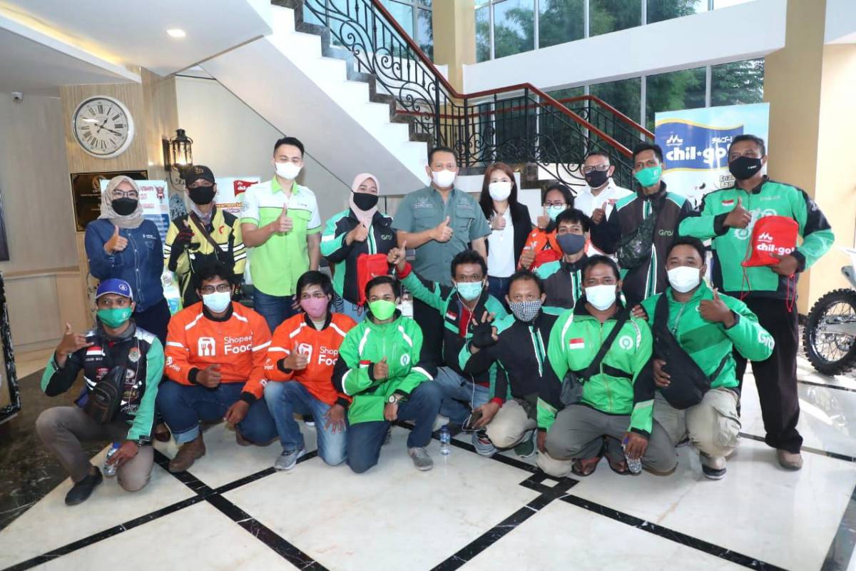 Bamsoet Serahkan Paket Bantuan Susu kepada Pengemudi Ojek Online